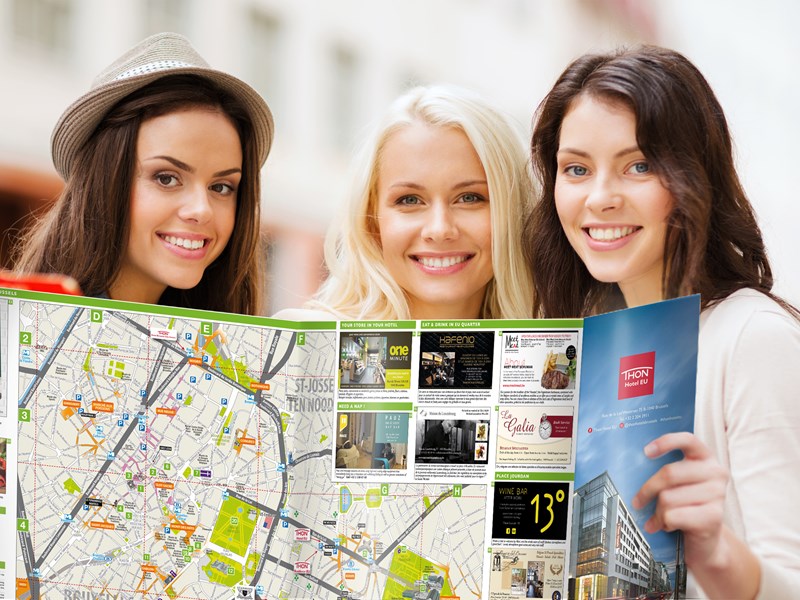 Cartographies des quartiers, du centre-ville, de la région, informations touristiques et culturelles et bonnes adresses. Le Plan de ville personnalisé est mis à disposition dans les chambres et distribué par les concierges et réceptionnistes aux clients des hôtels.